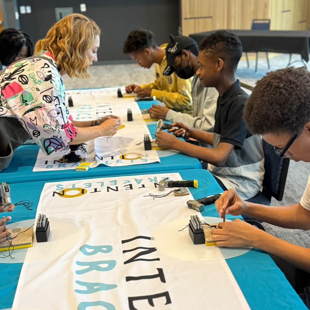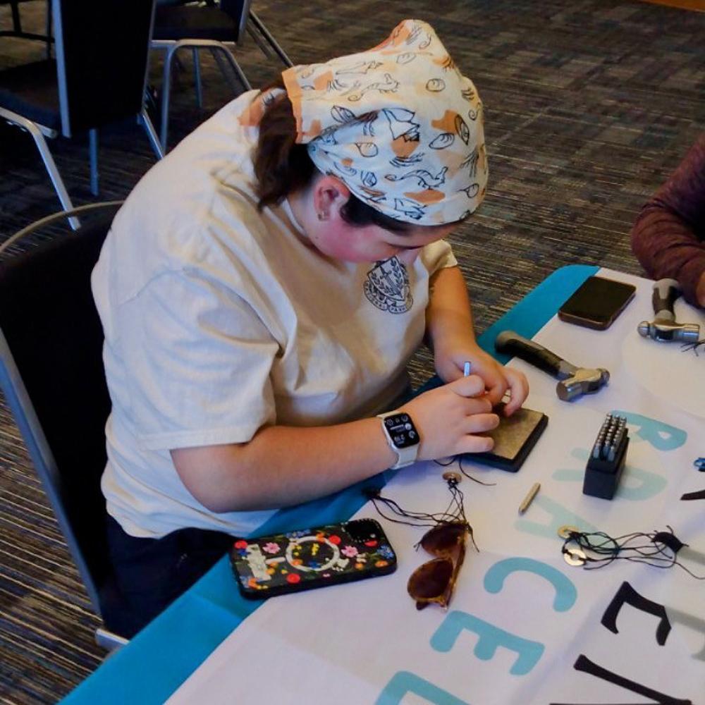 I truly cannot thank you enough...It was meaningful, fun, and students were clearly expressing themselves in the color of the thread, the hammering, the word/phrase chosen, and how they will use/display the bracelet. It was amazing!