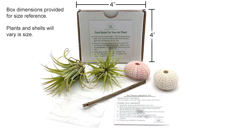 Keep Calm and plant on! Need a creative DIY project that enhances your mental and emotional health? Air plants are the perfect plant companion for busy students, only requiring one weekly soak. These low maintenance plants will set a peaceful environment perfect for studying by alleviating stress, improving focus and productivity. Also great for small spaces! Our Jellyfish Air Plant kits contain two air plants, two shells, clear string, and a stick. Each kit is also packed with simple step-by-step instructions on how to put the creatures together, and how to care for the air plant. Whether you're a new or seasoned crafter, this kit is perfect for events, small groups, or even alone in your own space!